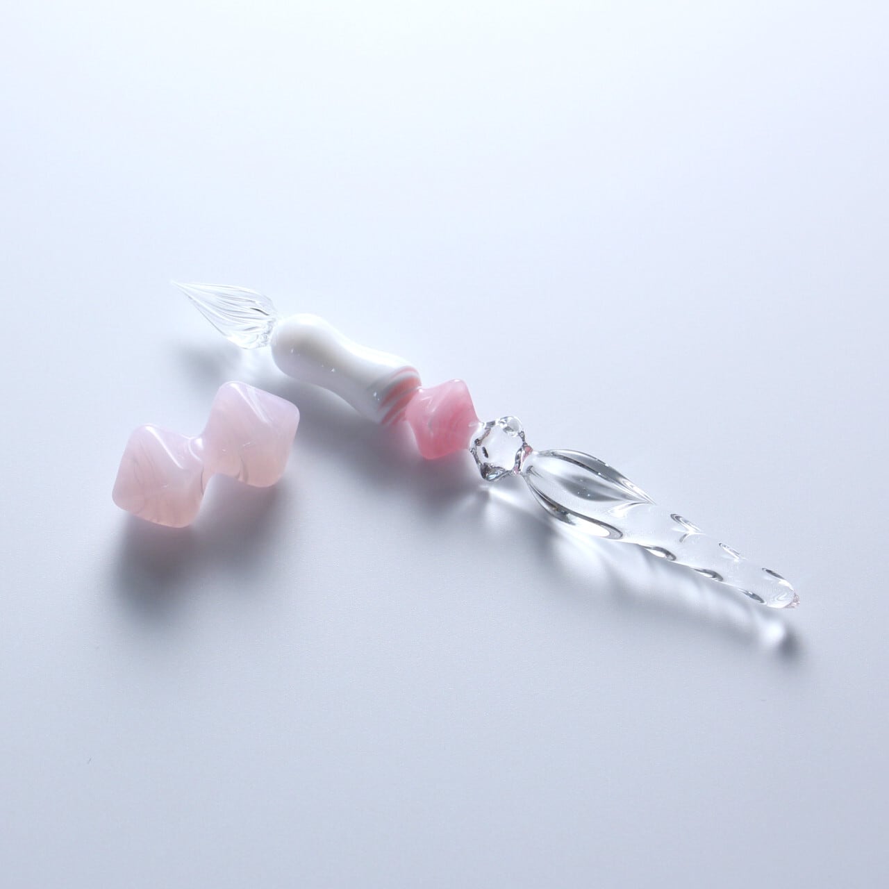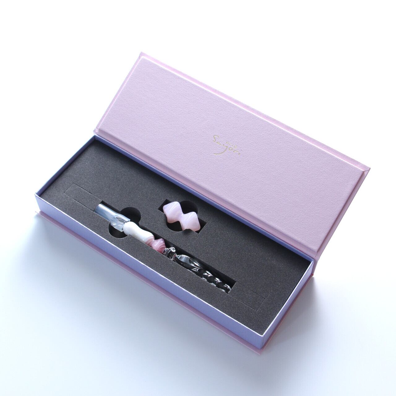 「ガラスペン shou英ローズクォーツ」にペンレストhyouシリーズから「hyou英ライトローズクォーツ」をセットにした期間限定品です